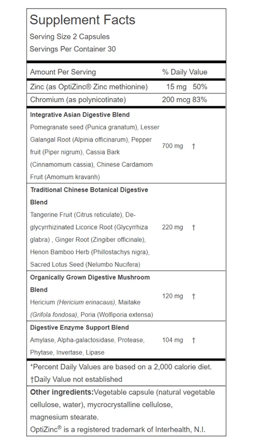 Integrative Digestive Formula™ gives your digestive system more natural heat by helping your body move energy downward through the digestive tract. So that this downward flow helps your body make more enzymes and stomach acid.