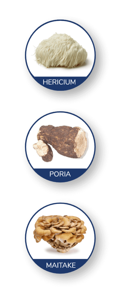 These immune-boosting mushrooms—Hericium, Maitake, and Poria—are rich in beta glucan, a natural compound that activates your body’s Natural Killer (NK) cells. These cells your body uses to fight off toxins, viruses, and harmful bacteria.