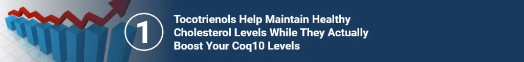 In a recent study, people who took tocotrienols had a 20% increase in their CoQ10 levels. This result is the same as taking about 10 to 20 milligrams of CoQ10 daily through supplements.